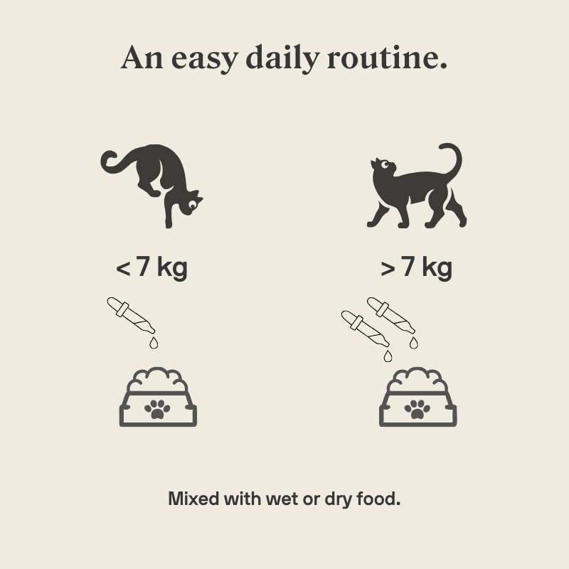 - Add to your cat’s food once per day