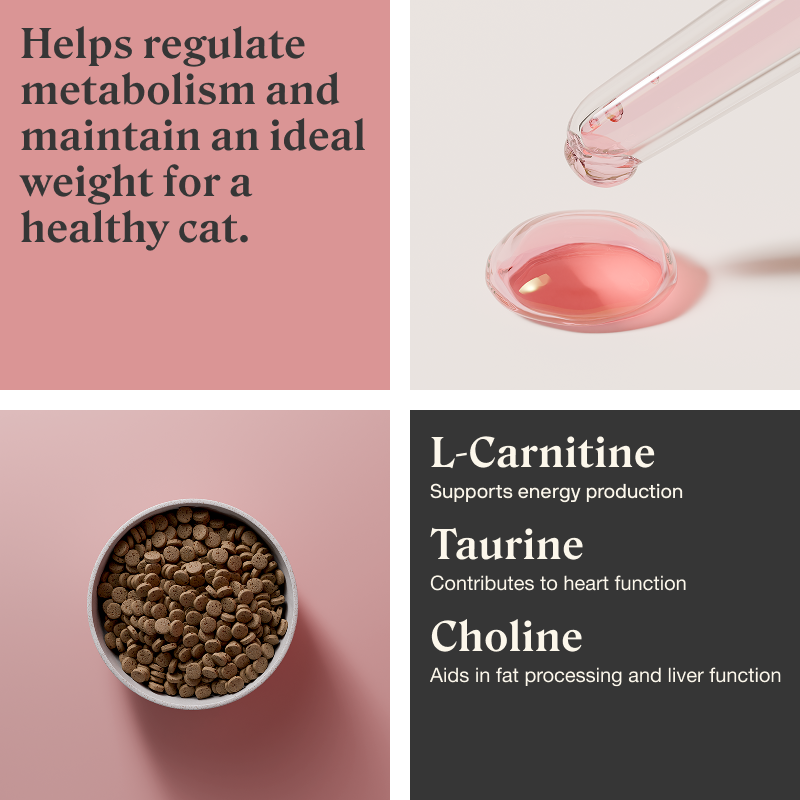- L-Carnitine acts as a helper, grabbing onto the fat molecules in your cat's body.
